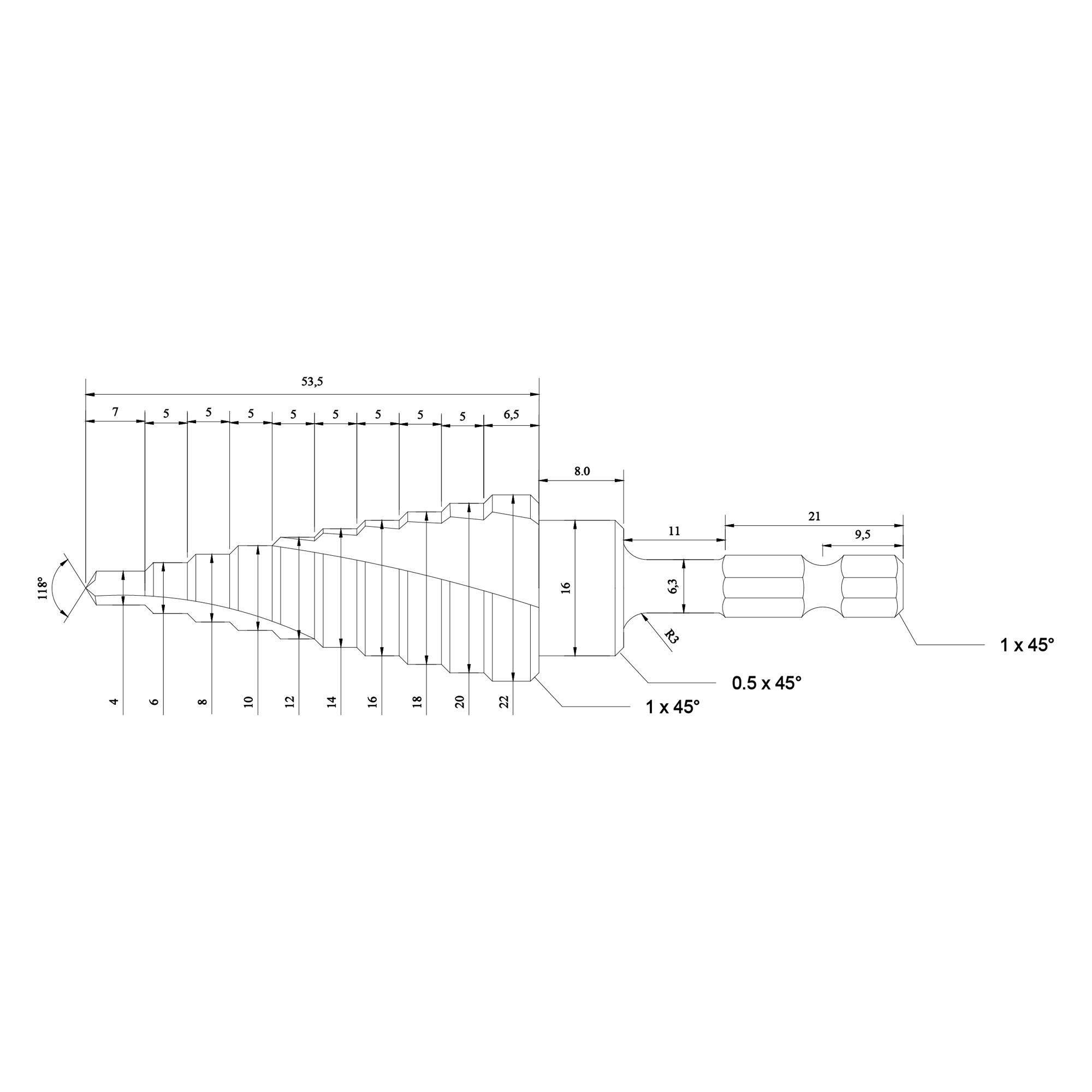 – Burghiile in trepte sunt proiectate pentru gauri repetitive in otel, otel inoxidabil, cupru, alama, aluminiu, plastic, plexiglas, laminate si multe alte materiale subtiri